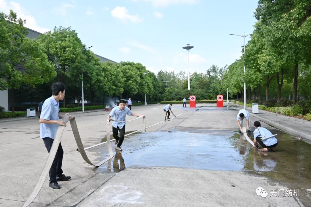 為鞏固“安全生產月”活動效果,檢驗消防應急處置能力,7月24日,天門紡機經過認真籌備,舉辦了年度消防技能競賽活動,活動分為滅火器接力撲救火災和消防水帶協作兩個項目,來自公司各部室、車間的8支隊伍參加了競賽。