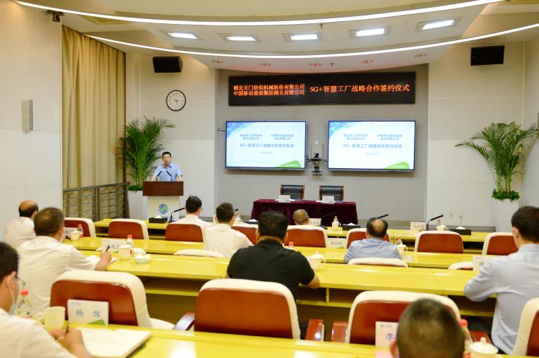 天門市委常委副市長曾令慧、經信局副局長宋鵬等領導出席了簽約式,全國人大代表天門紡機董事長沈方勇、全國人大代表湖北移動黨委書記董事長范秉衡分別致辭,天門紡機總經理焦倫進、湖北移動副總經理劉焱宇簽署了“5G+智慧工廠”戰略合作框架協議書。