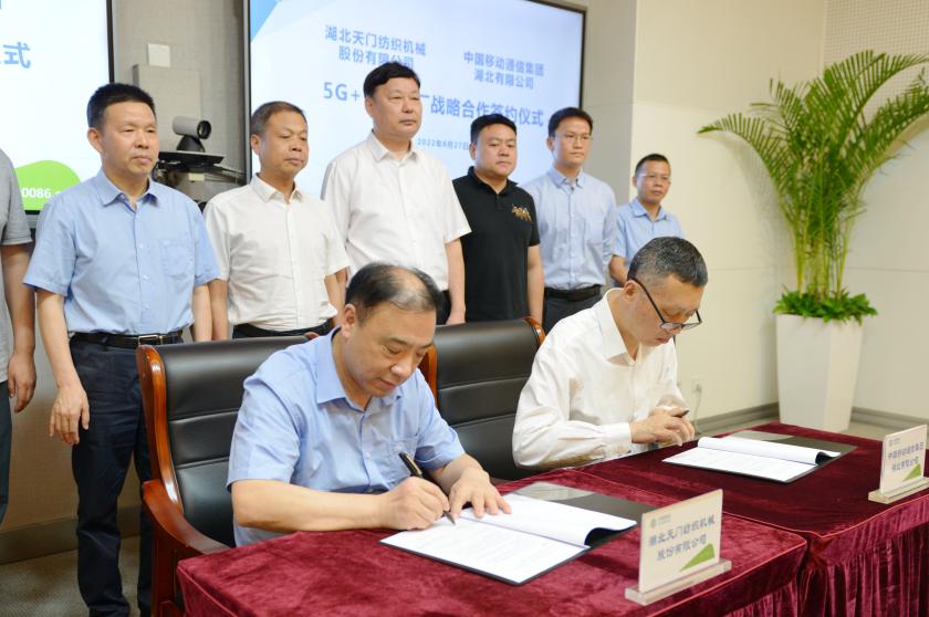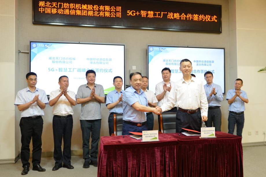 為“數轉智改”儲能 為攜手共建奠基 --天門紡機、湖北移動舉行“5G+智慧工廠”戰略合作簽約式