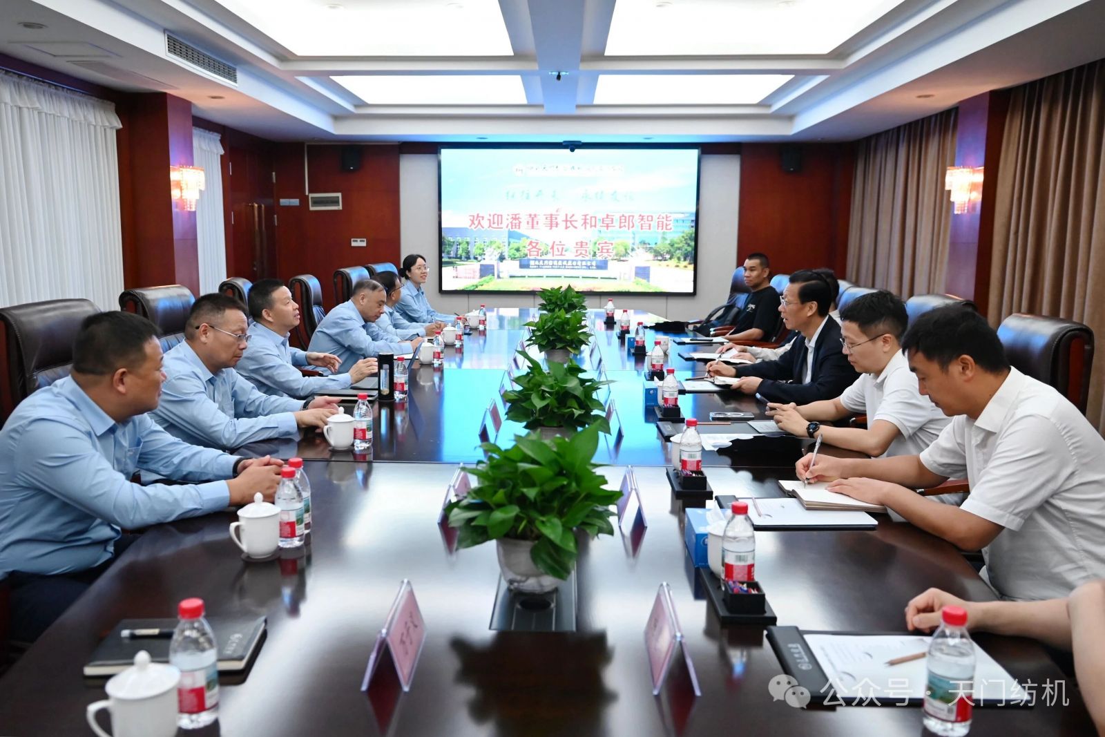 2025年9月27日,卓郎智能技術股份有限公司董事長潘雪平一行7人蒞臨天門紡機參觀交流,公司董事長沈方勇予以熱情接待。雙方圍繞紡織行業發展形勢及合作項目等議題進行了深入交流。
